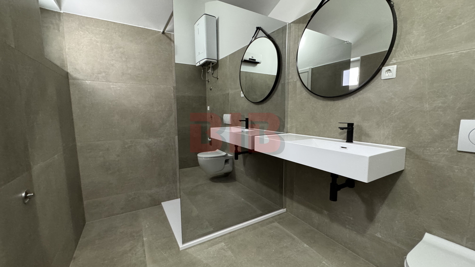 Stan-apartman se sastoji od kuhinje,2 sobe,kupaonice i dvije terase.Stan je kompletno adaptiran ove godine